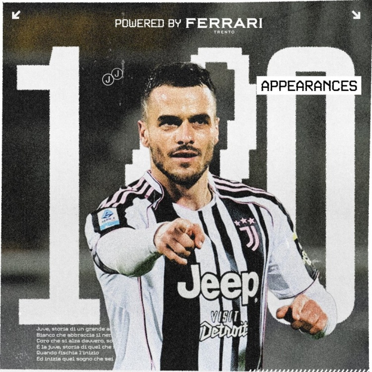 此役是科斯蒂奇为尤文出战的第100场比赛,此前99场贡献5球16助,尤文官方社媒晒出海报,祝贺他达成里程碑。